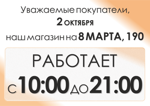 2 октября РАБОТАЕТ с 10:00 до 21:00!