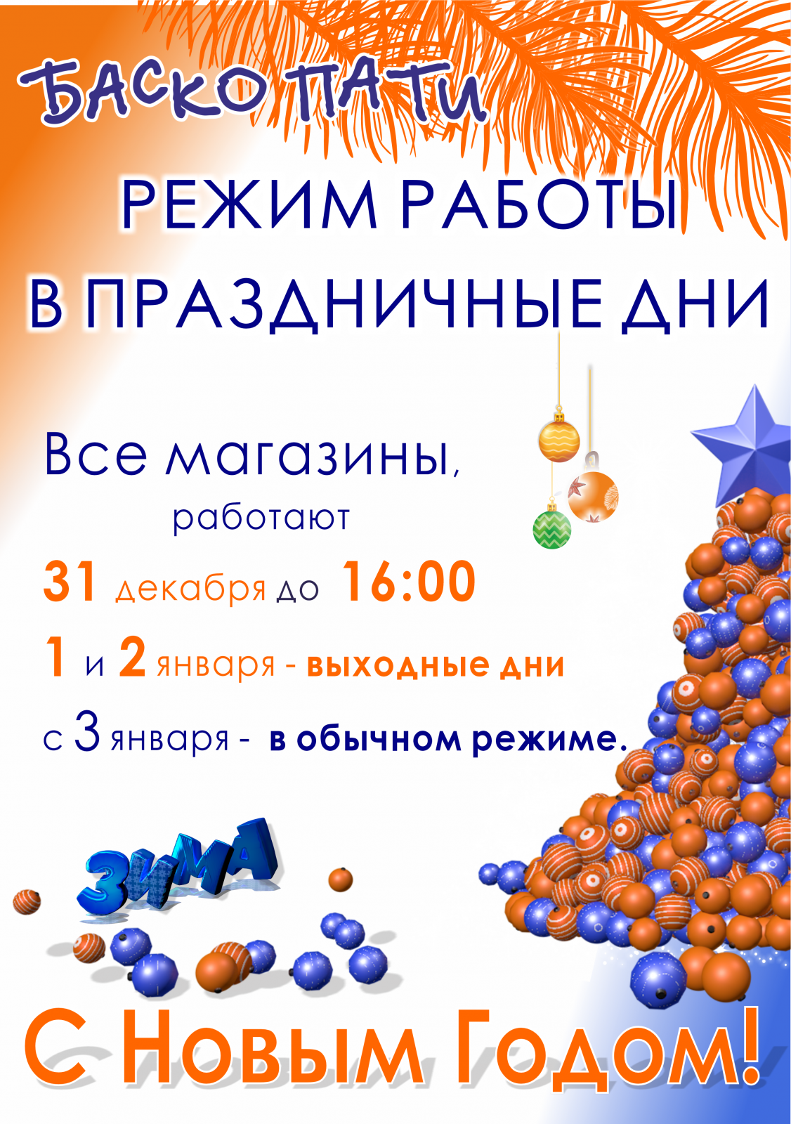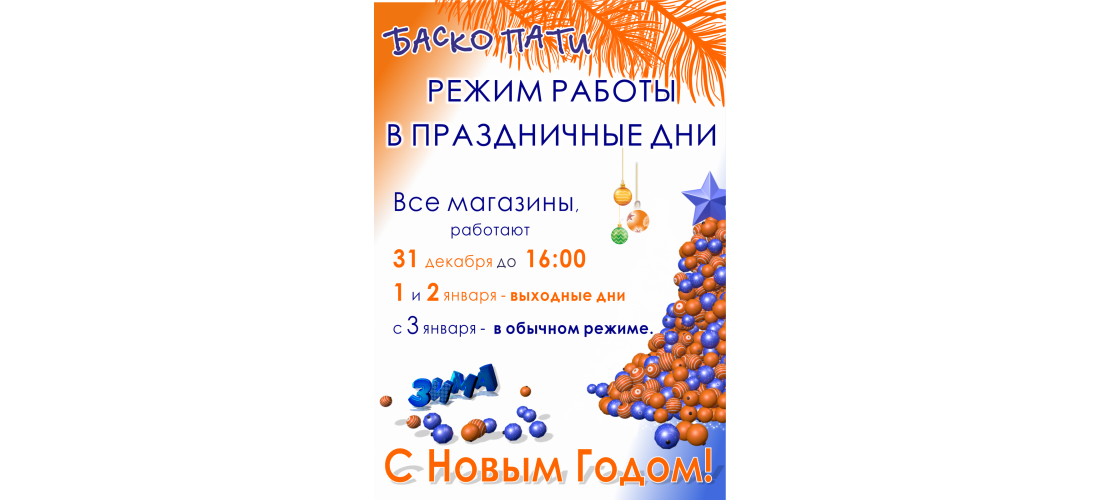 Уважаемые покупатели, в новогодние праздники мы работаем: