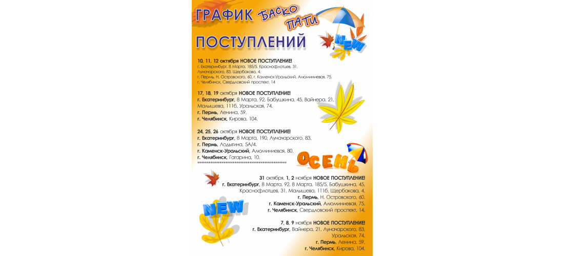 10, 11, 12 октября НОВОЕ ПОСТУПЛЕНИЕ!