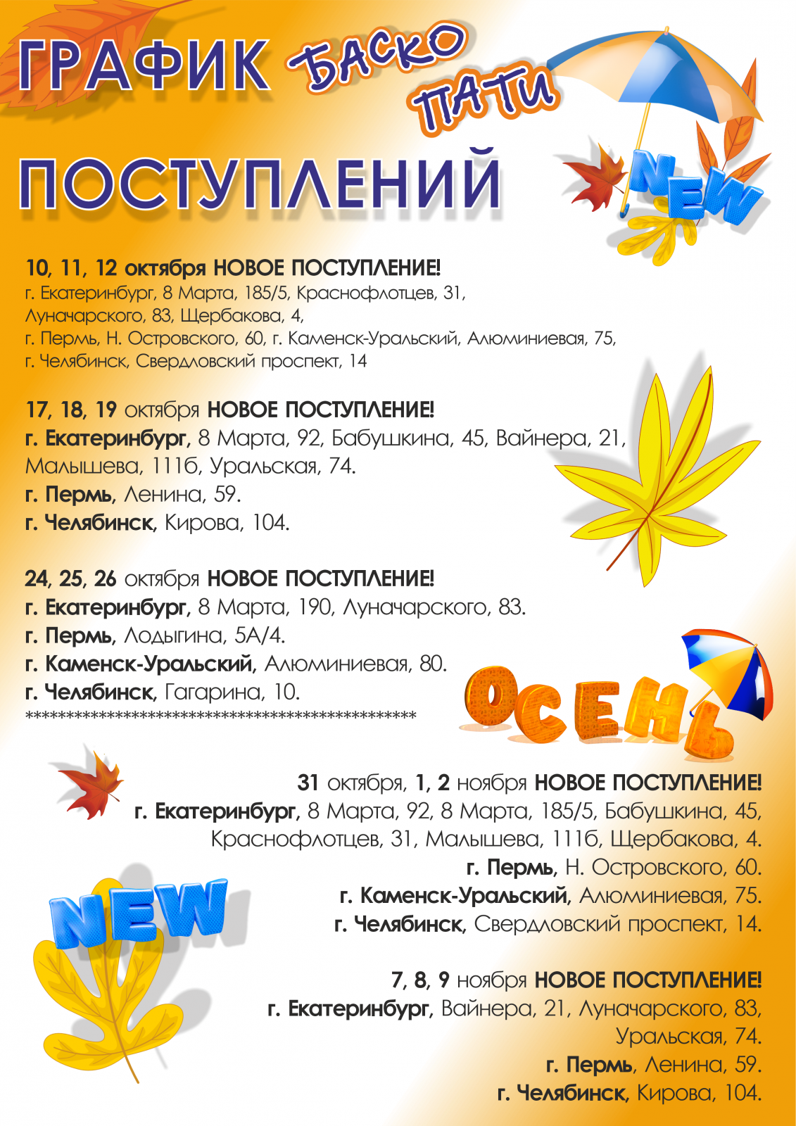 3, 4, 5 октября НОВОЕ ПОСТУПЛЕНИЕ!