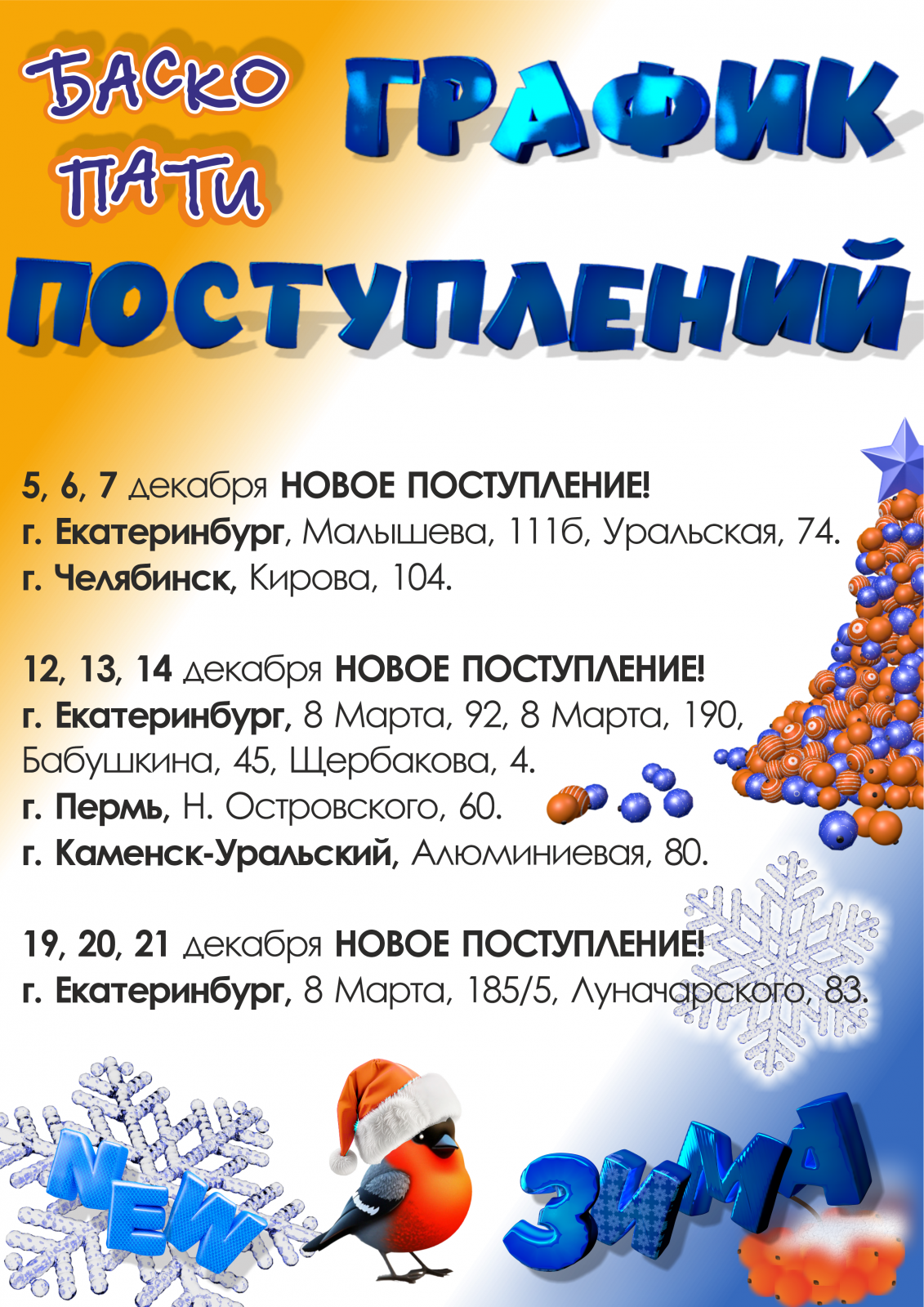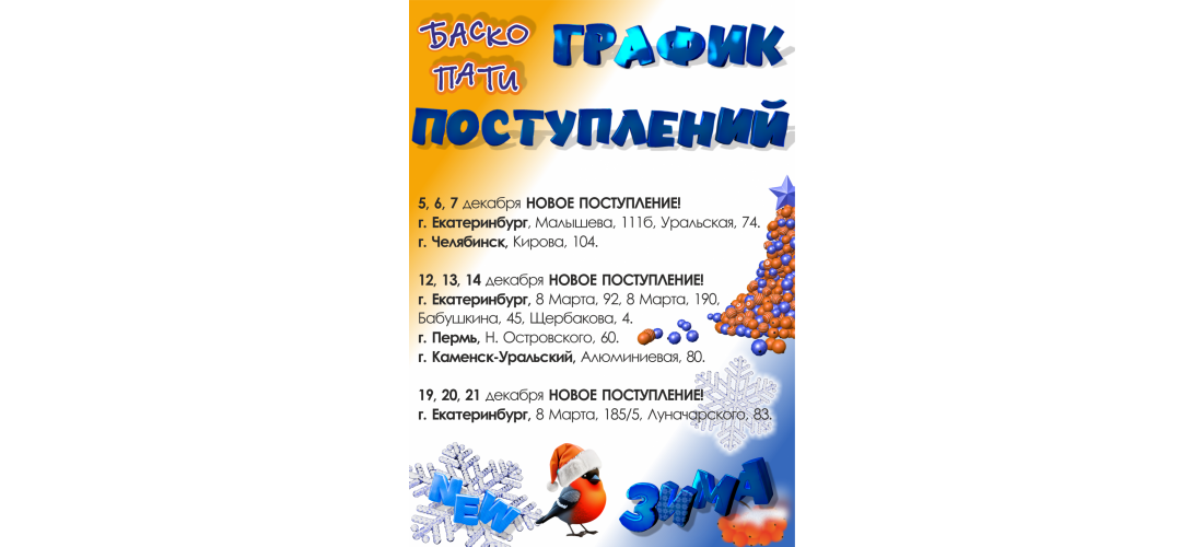 12, 13, 14 декабря НОВОЕ ПОСТУПЛЕНИЕ!