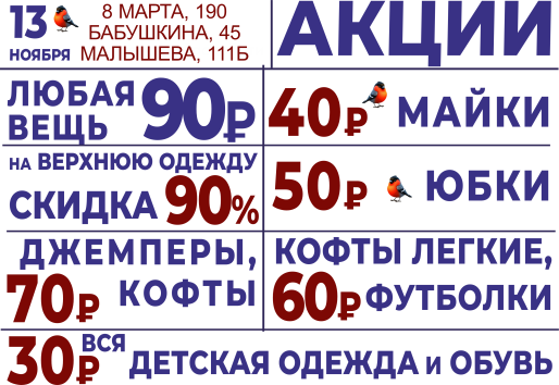 г. Екатеринбург, 8 Марта, 190, Бабушкина, 45, Малышева, 111б.