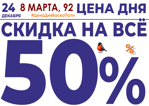 СКИДКА НА ВСЁ 50%!