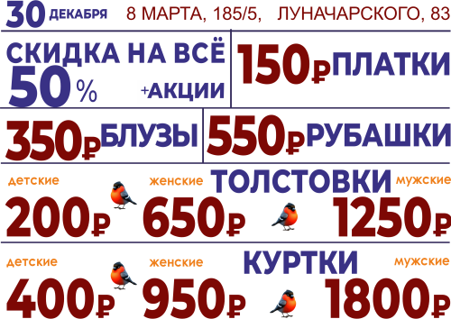 +АКЦИИ: ПЛАТКИ 150₽! БЛУЗЫ 350₽! РУБАШКИ 550₽!