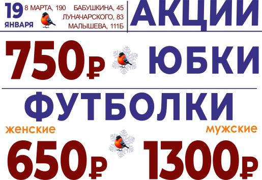+АКЦИИ: ЮБКИ 750₽! ФУТБОЛКИ женские 650₽, мужские 1300₽!