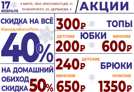 17 февраля СКИДКА НА ВСЁ 40%!