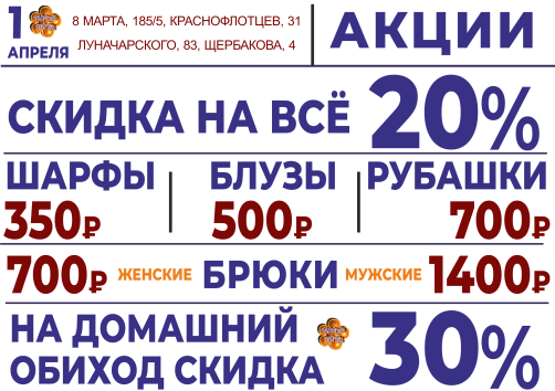 1 апреля СКИДКА НА ВСЁ 20%!