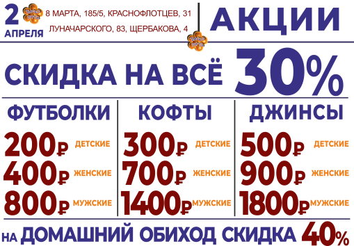 апреля СКИДКА НА ВСЁ 30%!