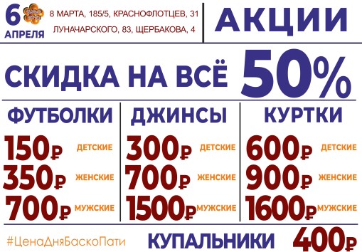 6 апреля СКИДКА НА ВСЁ 50%!