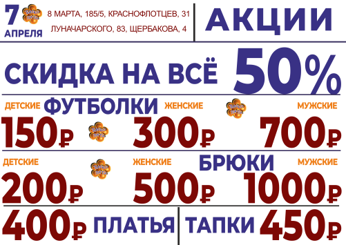 7 апреля СКИДКА НА ВСЁ 50%!