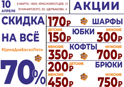 10 апреля СКИДКА НА ВСЁ 30%!