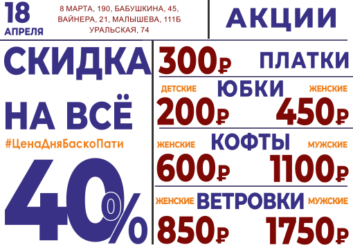 18 апреля СКИДКА НА ВСЁ 40%!