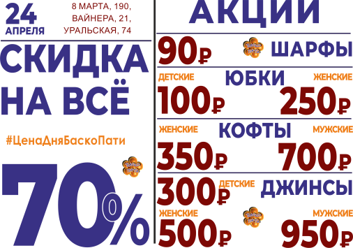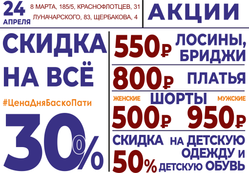 24 апреля СКИДКА НА ВСЁ 30%!